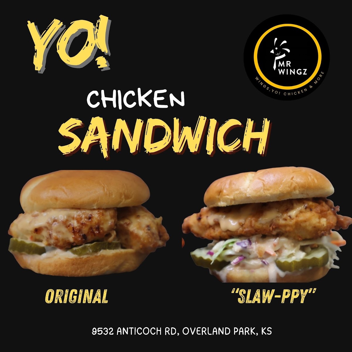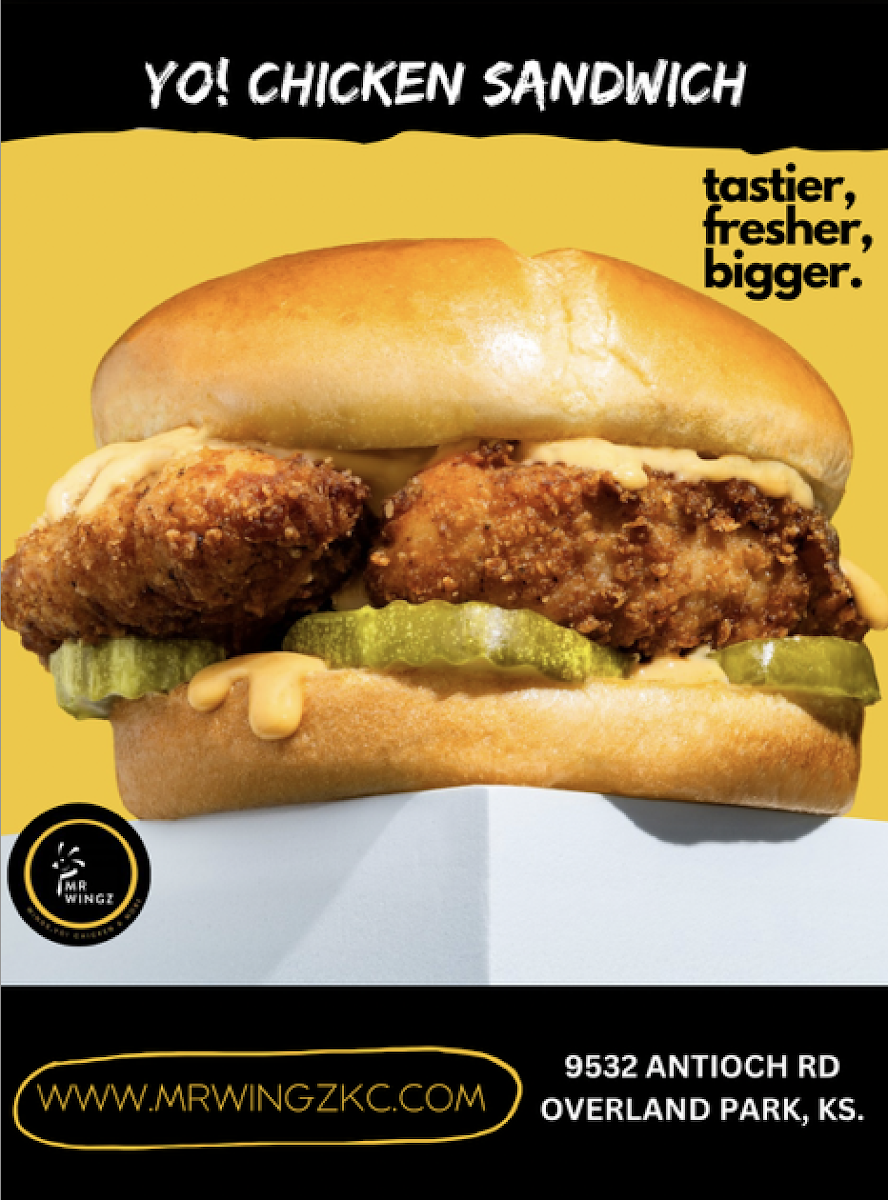 1 large Yo! Chicken tender and hot dill pickles on a toasted brioche bun with our Yo! Sauce!